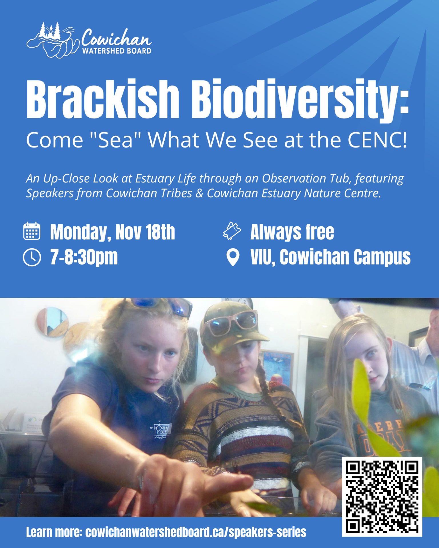 What: Have you ever wondered what kinds of life can thrive where freshwater rivers meet the salty ocean? This is a unique chance to get up close with these brackish beings from the comfort of the VIU-Cowichan lecture hall. Join us!