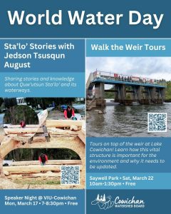 NOTES: Date is one week earlier to avoid May long weekend. There will be an additional, hands-on guided art activity with the 84,000 Project from 6:30-7pm. This a project of Xwulqw'selu Connections and the Cowichan Lake and River Stewards to commemorate and connect with the fish who tragically perished in the Cowichan River last July .